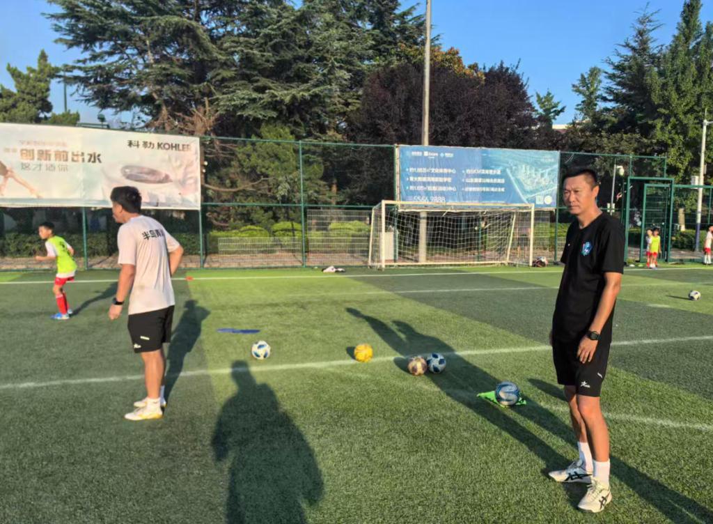 百年足球,青岛荣耀!近期,在天泰体育场外的训练场上,一位身材精炼的大咖,正在穿梭指导年轻教练冒着高温酷暑和孩子们训练,他就是现任半岛足球俱乐部青训总监,曾在职业赛场身经百战,专门负责盯防对方箭头人物的叶荣顺。