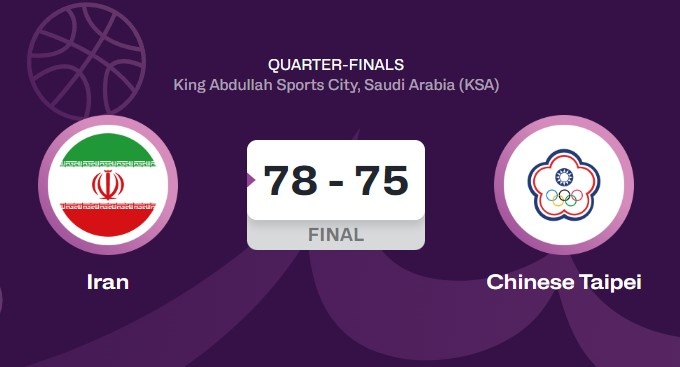 本场比赛,中国台北队最多领先21分,但伊朗队在末节完成逆转,第四节伊朗队26比11净胜15分。