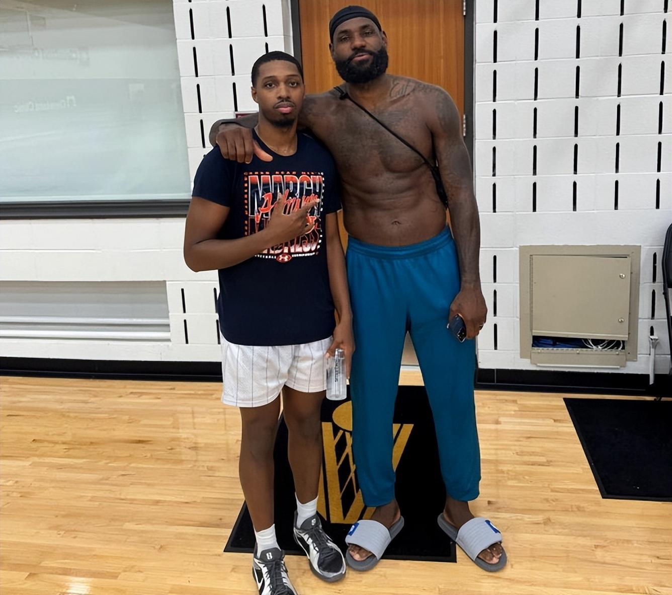 骑士队也在备战夏季联赛,球队训练馆却出现一个熟悉的身影:老詹!据美媒报道,老詹在骑士训练馆与球队夏联新秀琼斯合影留念,地板上有骑士新款队徽Logo,老詹的胡须造型也与他近期社媒自拍形象保持一致!此前,老詹执行了最后1年价值5263万美金的球员选项,他到底是准备在湖人最后一舞还是要申请离队众说纷纭,骑士被视作老詹最理想下家。对此,老詹通过社媒公开回应,他表示:我仍然居住在这里,我每个夏天都会在这里训练。老詹说得风轻云淡,但他在这个时间节点现身骑士难免让人浮想联翩。